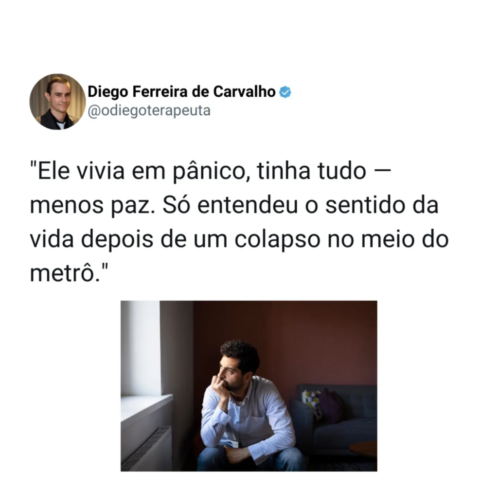 Sou Diego Ferreira de Carvalho, psicoterapeuta com sete anos de experiência no atendimento de pessoas que enfrentam ansiedade, esgotamento e crises de sentido.